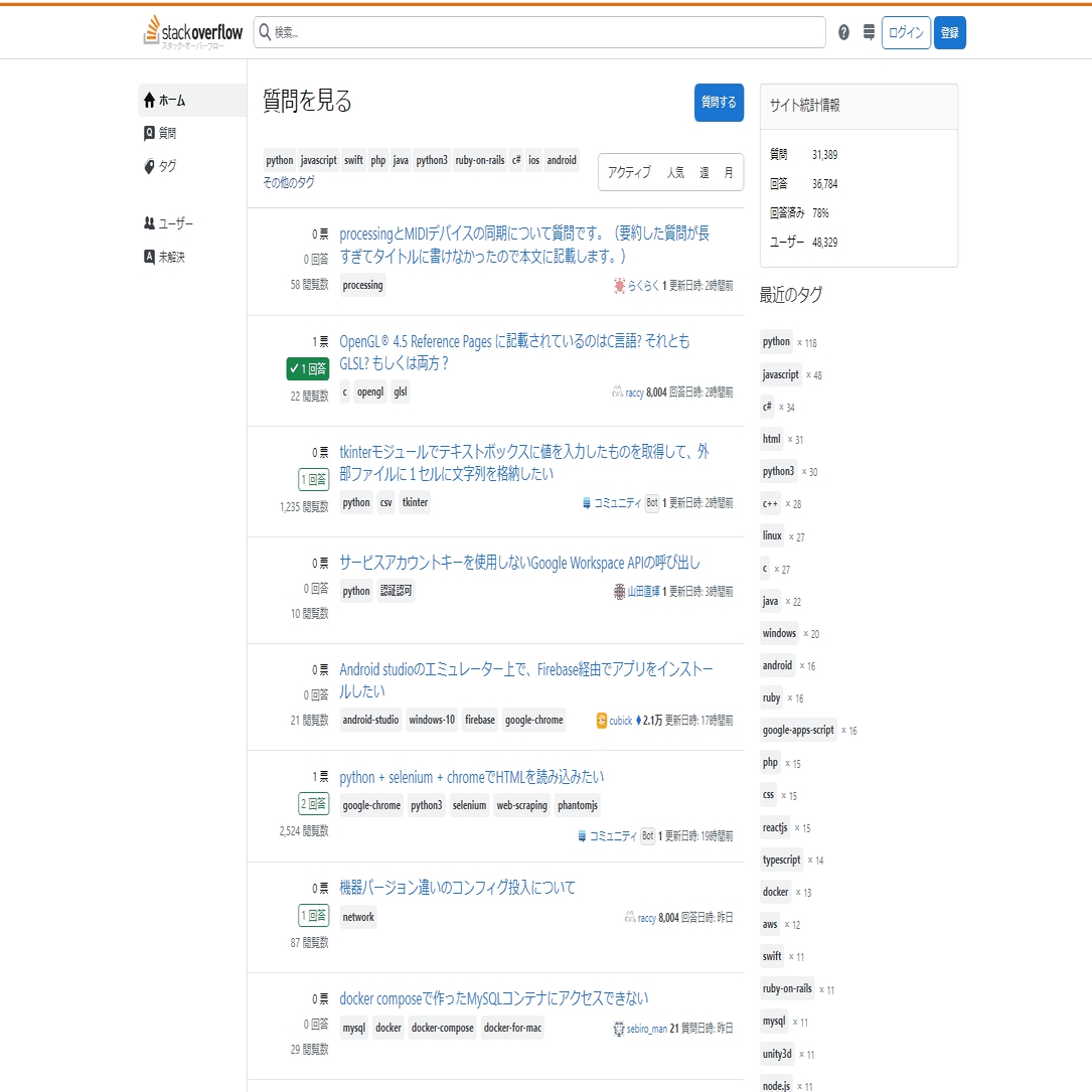 Stack Overflowは、プログラマー向けのQ&Aサイトで、技術的な問題に対する回答を迅速に得ることができる場です。エラーの解決や新しい技術の理解を深める際に役立ちます。
