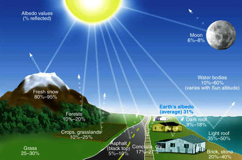 メリット:アルベドを把握することで、地表のエネルギー吸収と反射の関係を定量的に評価でき、気候変動のメカニズム解明や環境管理に役立つ点が大きな利点です。特に雪氷域のアルベド変化は地球温暖化のフィードバック効果を理解する上で重要な指標となります。都市環境では、高アルベド材料を用いた建築設計によって表面温度の上昇を抑え、冷房エネルギーの消費削減やヒートアイランド対策に貢献します。また、衛星観測によるアルベドデータは広域かつ継続的に取得できるため、環境モニタリングや土地利用変化の分析において信頼性の高い基礎データとして利用できます。