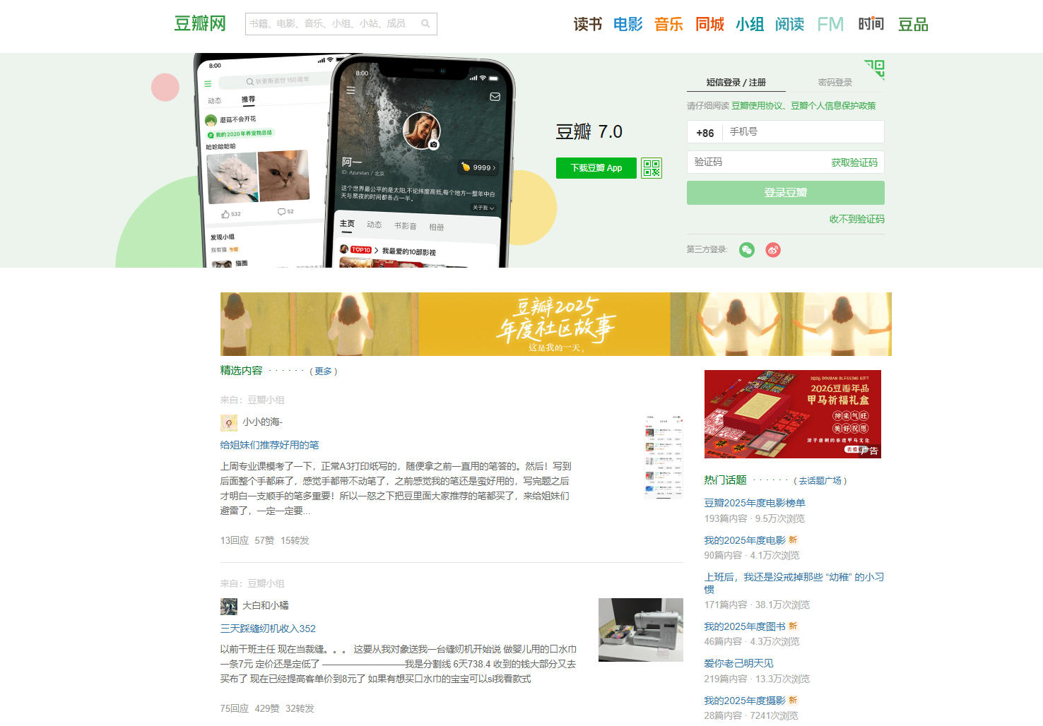 1. 豆瓣のホームページ。