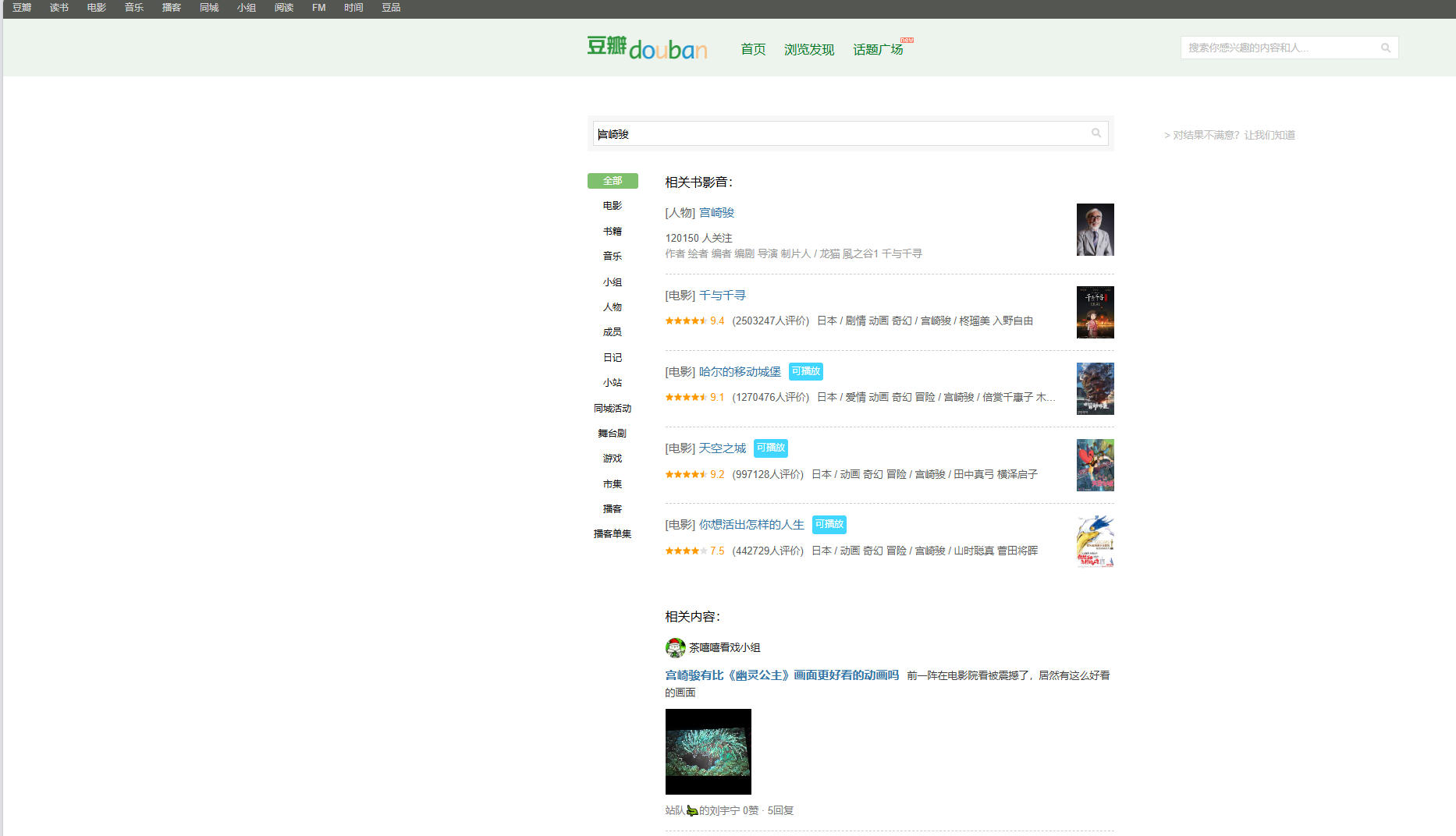 2. 豆瓣の検索ページ。