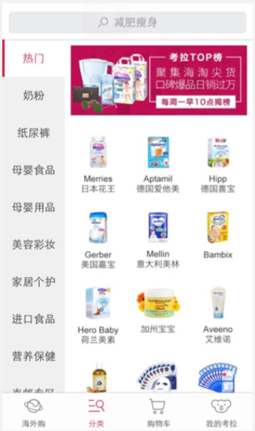 2. 考拉海購アプリのカテゴリーページ。