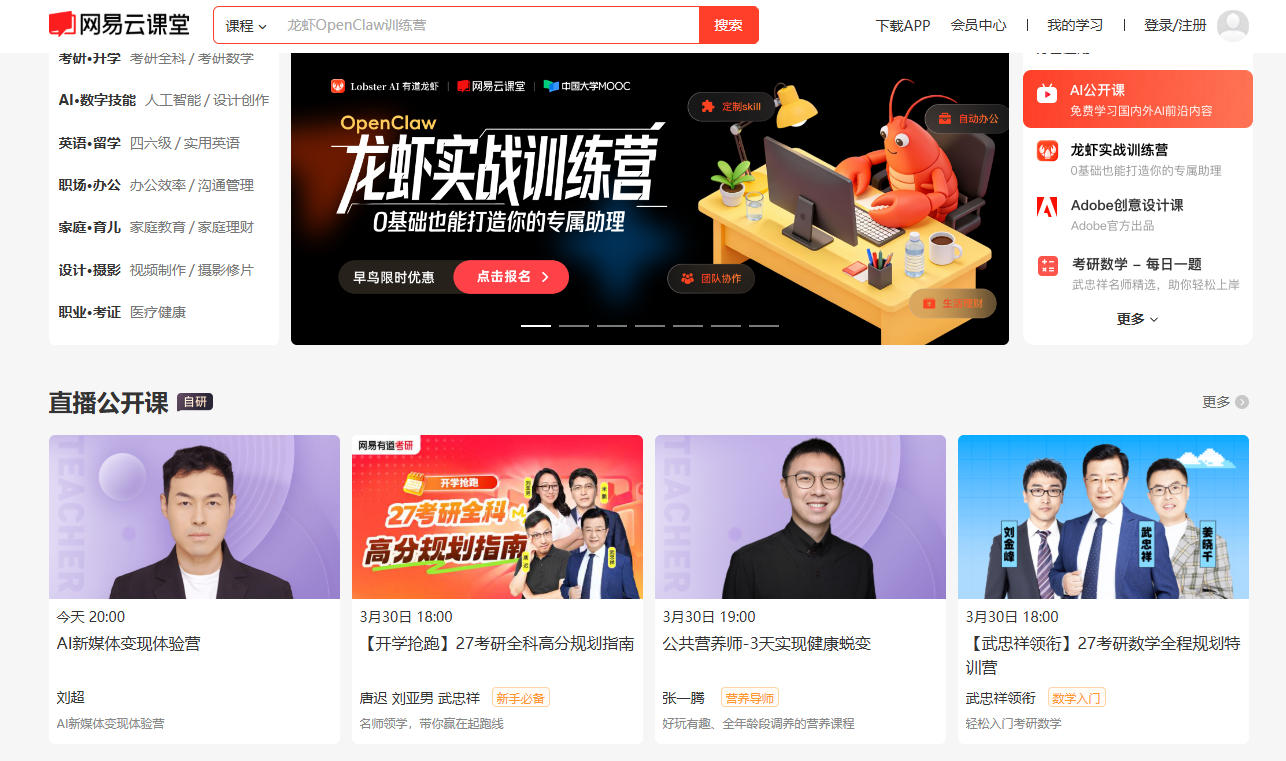 メリット:NetEase Cloud Classroomはインターネット環境があれば場所や時間を問わず学習できる点が大きな利点です。講座の種類が豊富で、IT技術、ビジネススキル、デザインなど実務に直結する内容が多く、効率的なスキル習得が可能です。また、動画講義や実践課題を組み合わせた体系的なカリキュラムにより、初心者から専門レベルまで段階的に学習できます。オンライン形式のため学習コストを抑えられる場合が多く、多くの学習者が継続的に自己啓発を行える教育環境を提供しています。