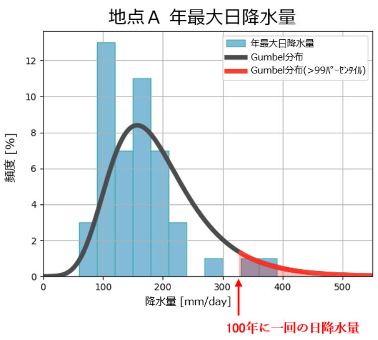 1. 地点A年最大日降水量。