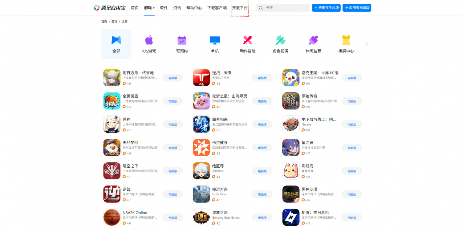 2. Tencent Appstore のホームページ。