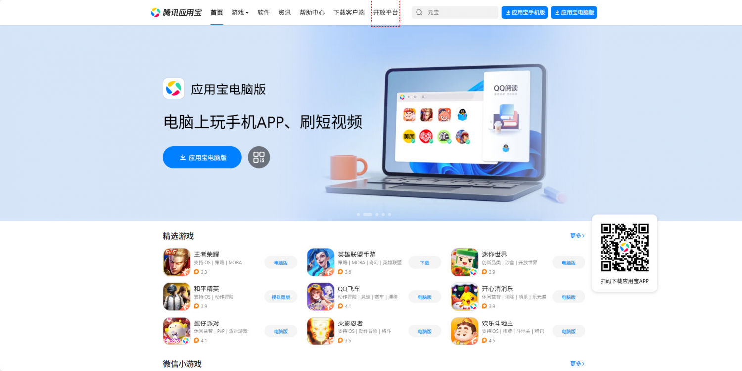 1. Tencent Appstore のホームページ。