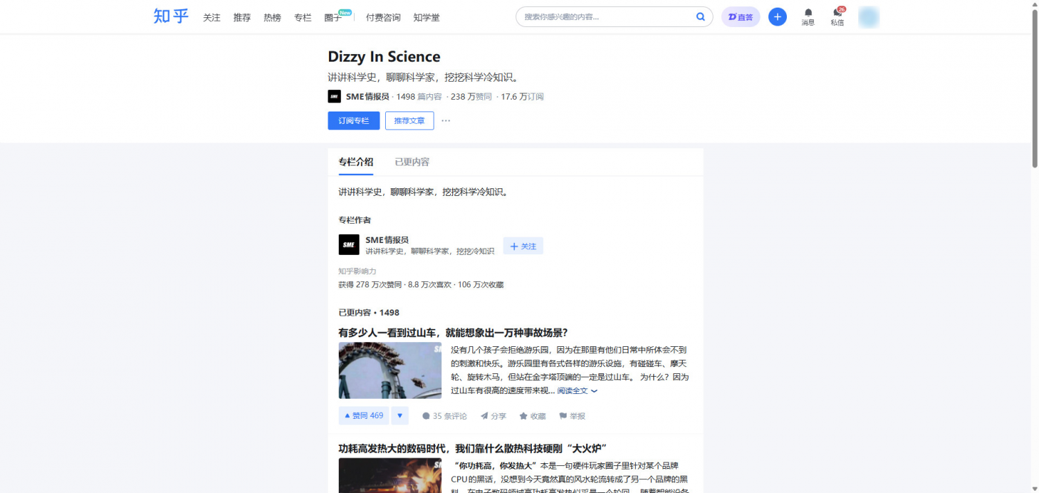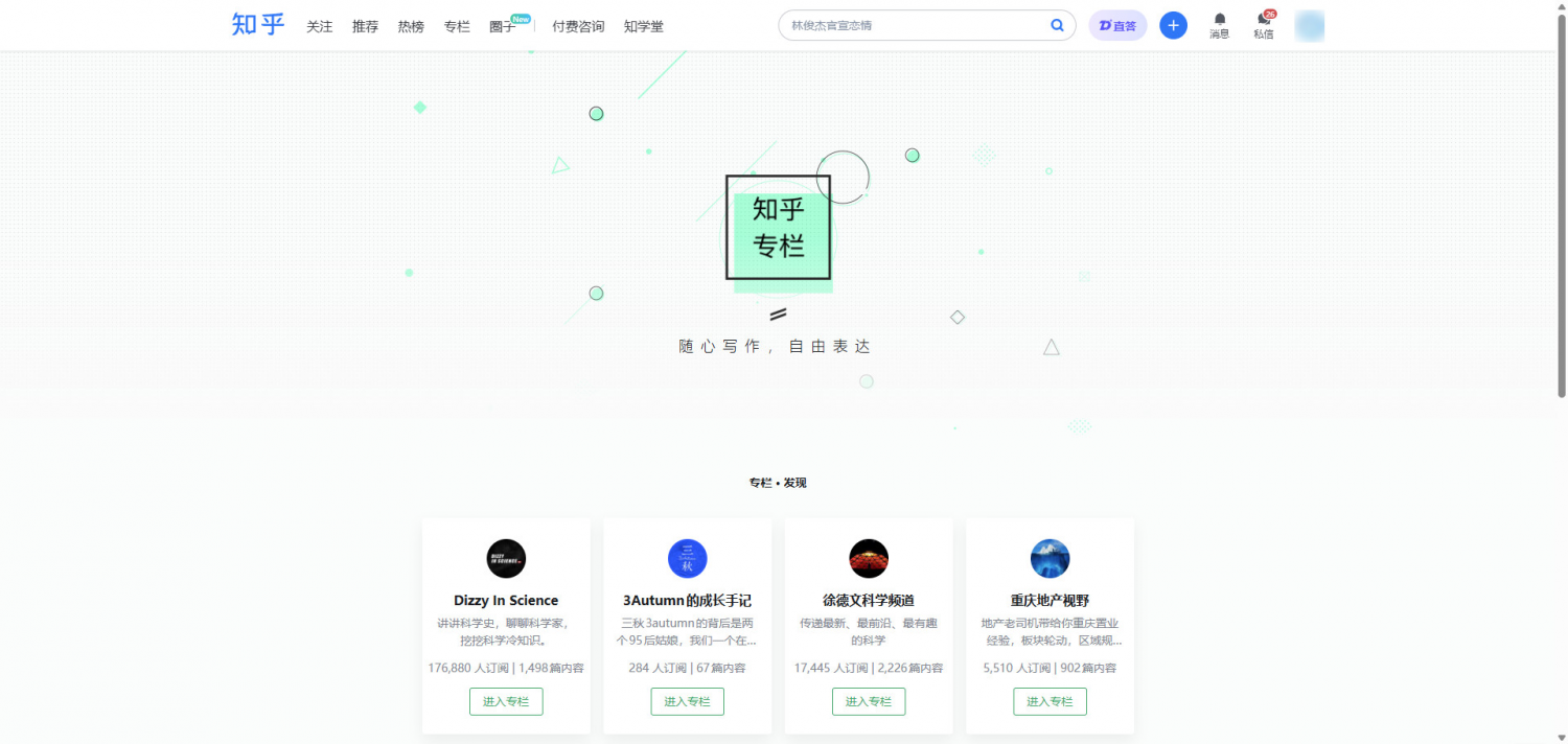 1. 知乎コラムのホームページ。
